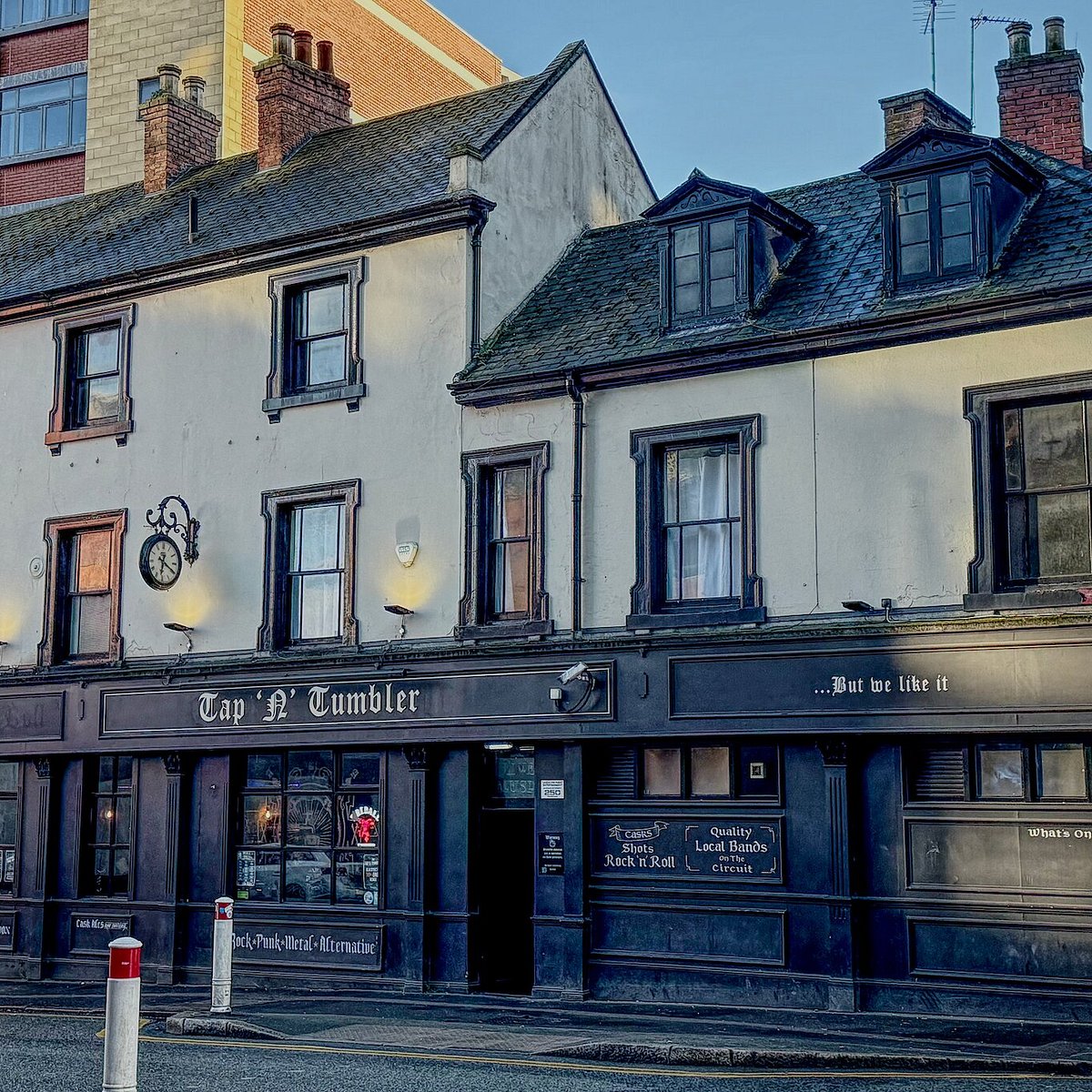 Tap & Tumbler er en av mine favorittpuber i Nottingham. Det er lett å se at puben har et fokus på rockemusikk. Det er mange plakater på veggene og mye musikkmemorabilla i inventaret. Blant annet er håndpumpene til ølkranene laget av gitarhoder. Jukeboksen er også fylt opp med passende musikk.